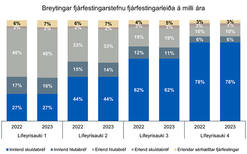 Markmið um hlutfall eignaflokka hjá Lífeyrisauka 1, 2, 3 og 4 breytast eins og hér segir: